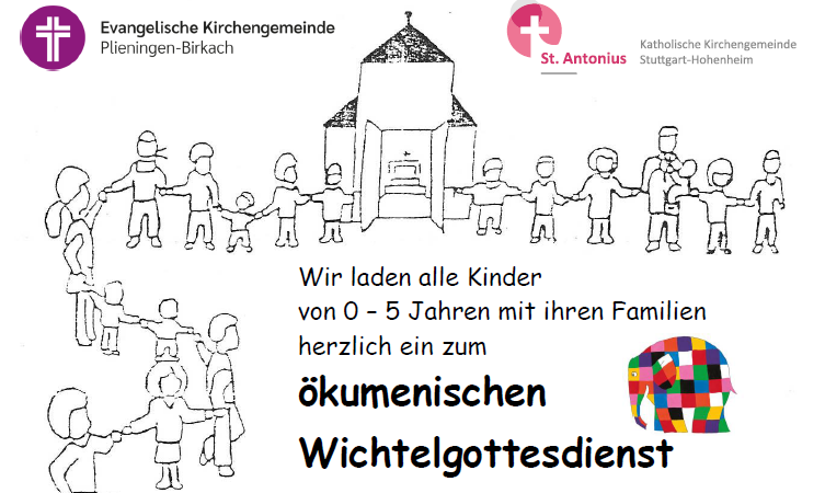 Am Sonntag, den 25.01. laden wir um 10 Uhr alle Kinder von 0-5 Jahren mit Ihren Familien ganz herzlich zur nächsten Ökumenischen Wichtelkirche in das Ev. Gemeindehaus Mönchhof in Plieningen ein.